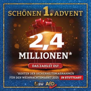 Stuttgart haut für 2025 mal eben 2,4 Millionen Euro raus, nur damit der Weihnachtsmarkt nicht aussieht wie ein Drive-In für Terroristen. Und wer zahlt’s? Richtig: DU.